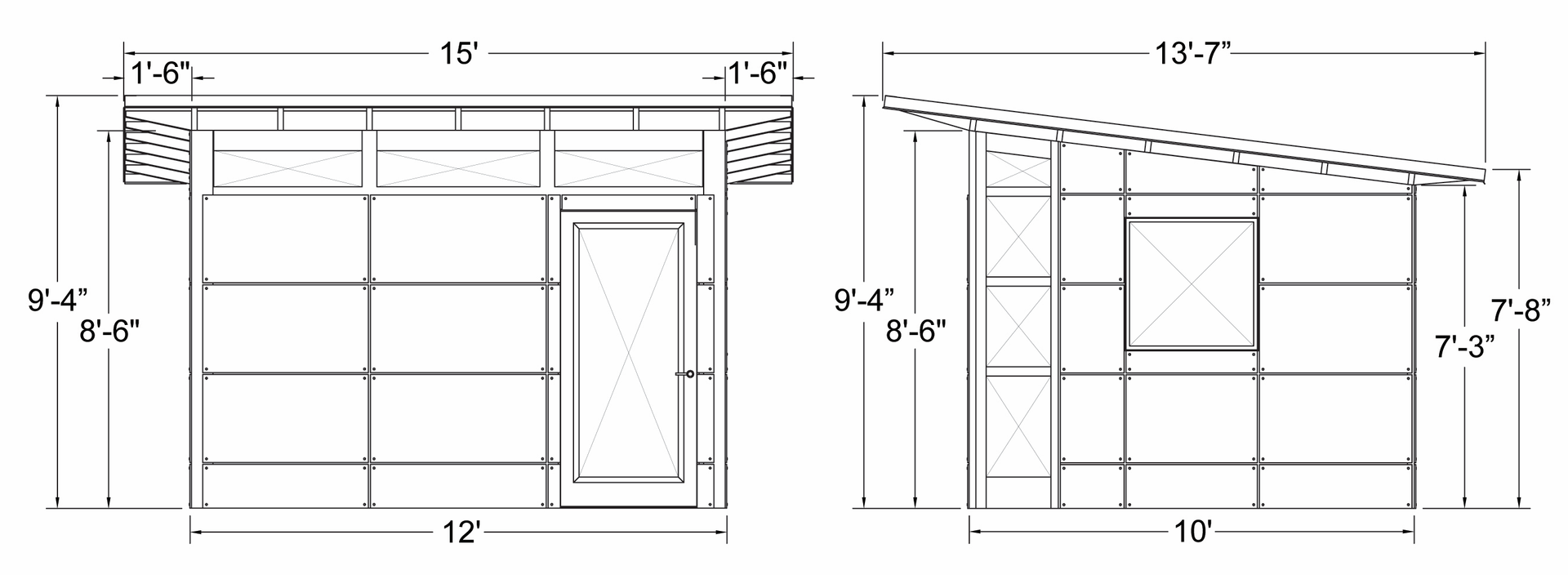 8' x 10' to 12' x 20' • finished studio shed